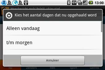 Na het starten van TVGids krijg je de vraag hoeveel dagen je wilt 'ophalen'. TVGids.tv haalt tot een week aan programmagegevens voor je op en deelt ze vervolgens in op 5 categorieën. Tik onderin je scherm op Nu, Primetime, Film of Sport om de bijpassende programmering te zien. Ook zoek je gemakkelijk in genres naar programma's.